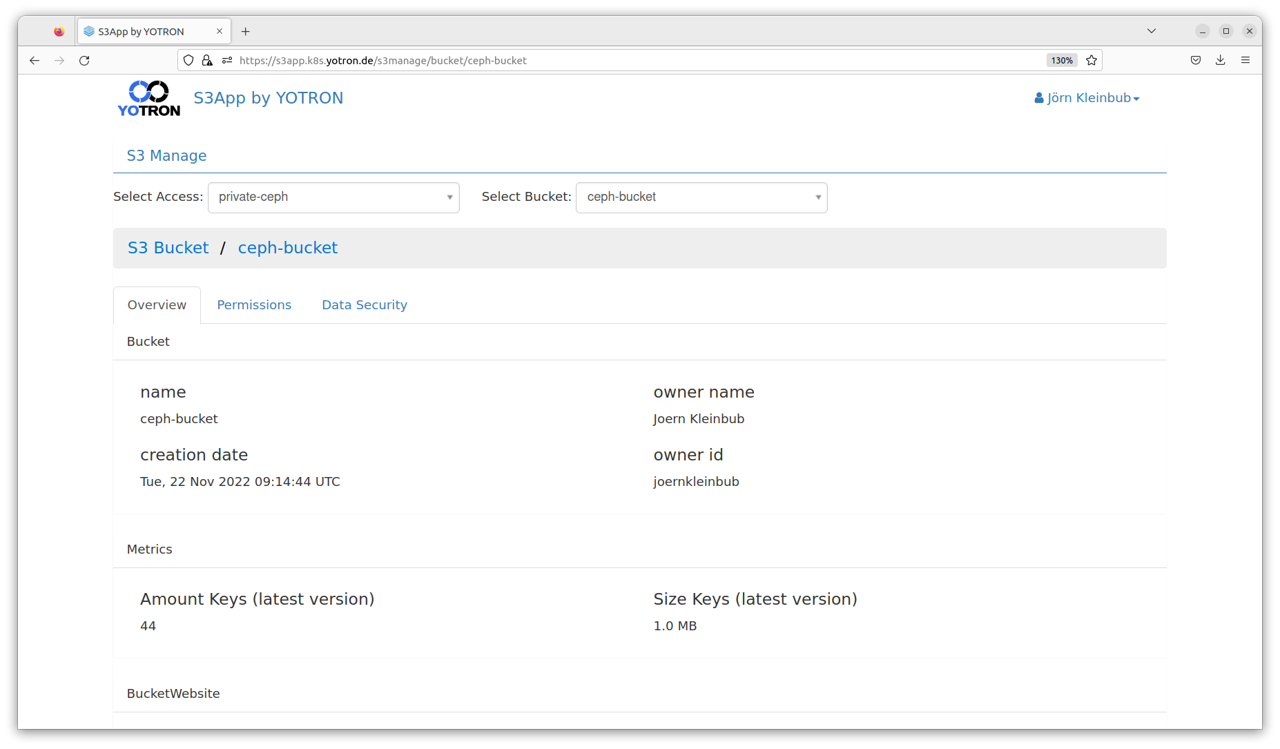 S3Manager: An S3Manager has additional permissions to an S3User. An S3Manager can see the setting of an S3Bucket like the Permission configuration, the ACL, Logging, …