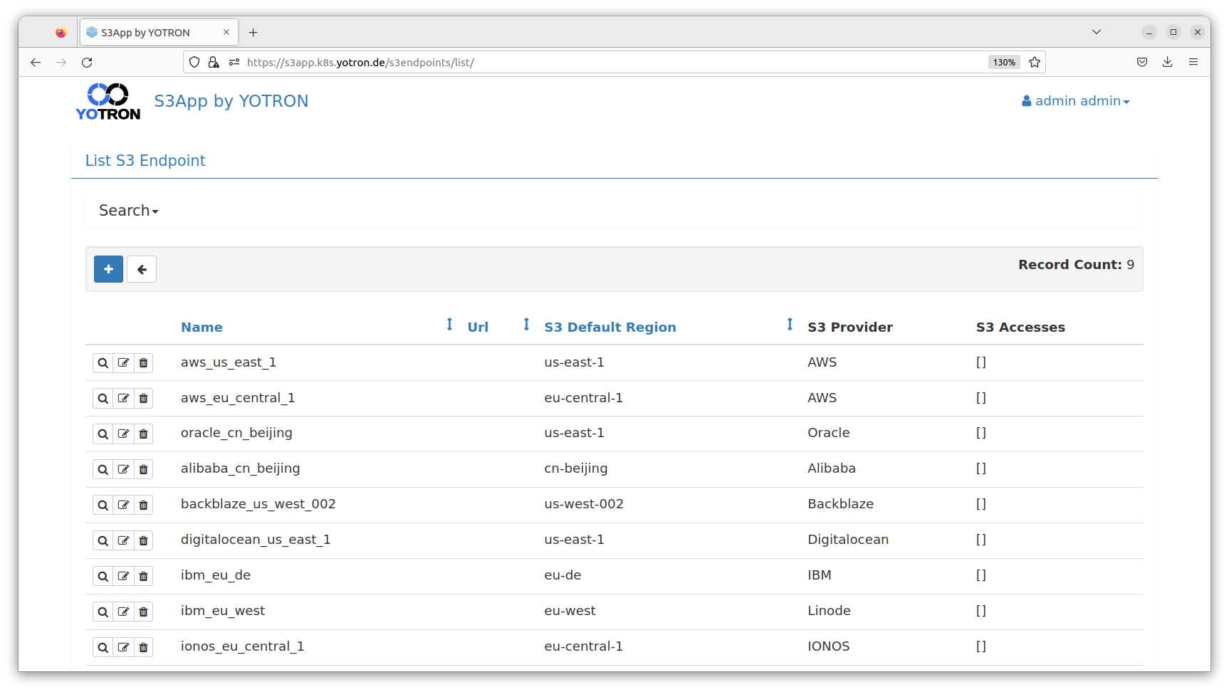 In S3Aoo, major providers of managed object storages like AWS, Oracle, IBM are preconfigured with their endpoints.